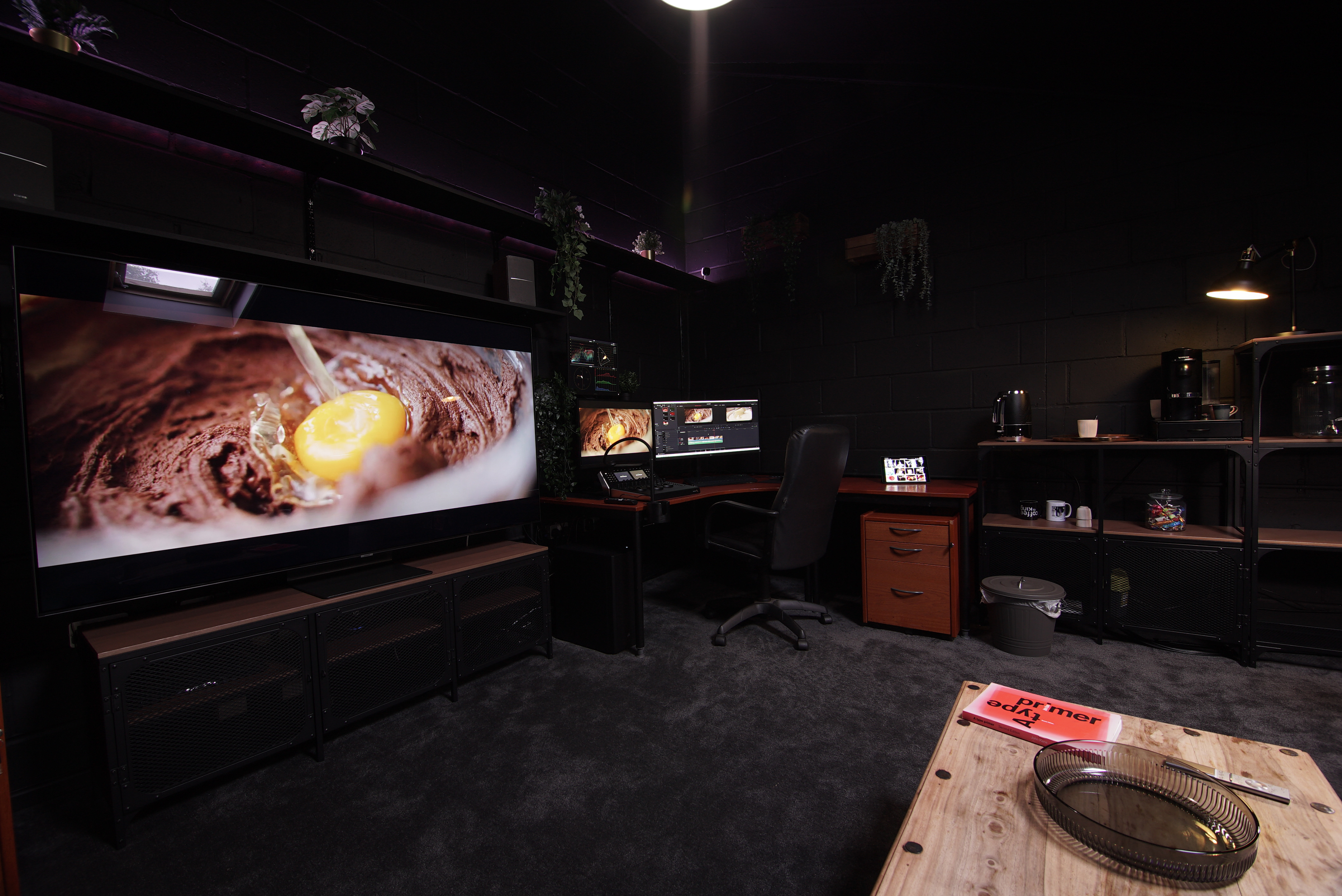 Our upstairs overlooks the studio and also doubles as an edit and grading suite, with a colourist available to grade, chroma-key, add GFX and crop to different aspect ratios… all live as you shoot.